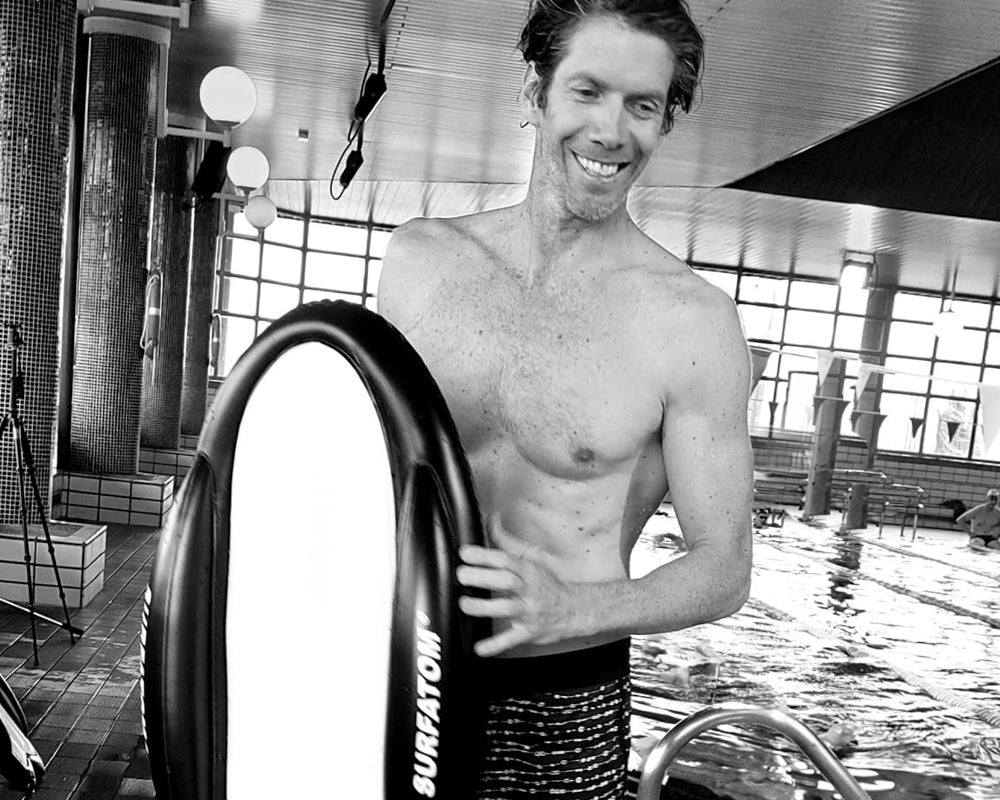 "Surfatom es la alternativa perfecta para ponerse y mantenerse en forma de cara a la práctica de surf. La sensación que proporciona es justo como con la tabla, y también te obliga a mantener una postura correcta. No solo mejora la remada sino que también fortalece todos los músculos utilizados de manera específica, y creo que ningún otro ejercicio se centra en esta musculatura. Con Surfatom, lo logras. Es fácil de usar, transportar y mantener. La herramienta perfecta para mantenerse motivado en este deporte."
